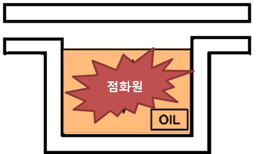 전기기기의 스파크 발생 우려가 있는 부분을 기름 속에 넣어 담그는 것